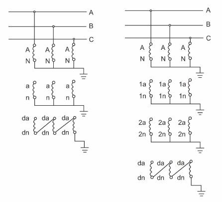 X – Có cuộn dây điện áp dư (để bảo vệ nối đất)