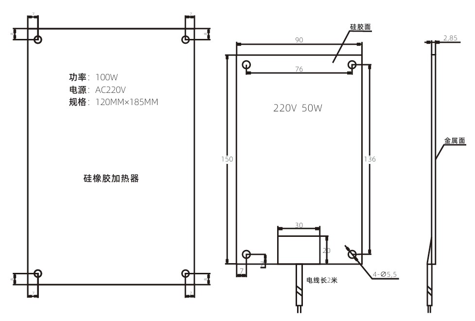 50W 150mm 90mm 2,8mm 136 76