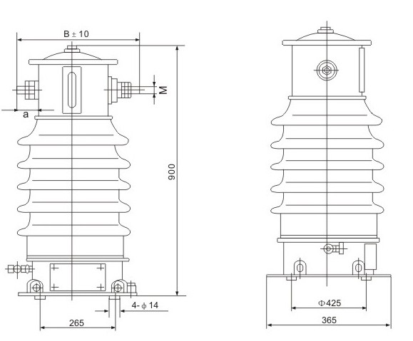 Kích thước lắp đặt CT cách điện bằng dầu nhỏ gọn LCWD1-35, LABN1-35W2