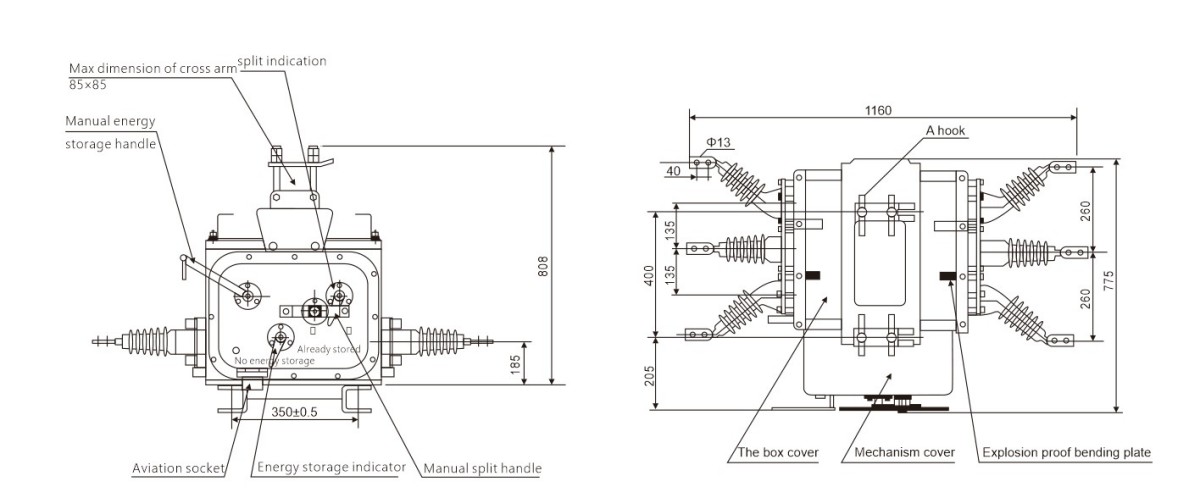 Máy cắt chân không SF6 ngoài trời dòng ZW20 sản xuất tại Trung Quốc cũng đi kèm với các chức năng thiết thực hơn: bảo vệ quá dòng, chỉ báo lưu trữ năng lượng lò xo cơ chế và ổ cắm hàng không cho các kết nối điện thứ cấp. Thật dễ dàng để ghép nối với bộ điều khiển thông minh.