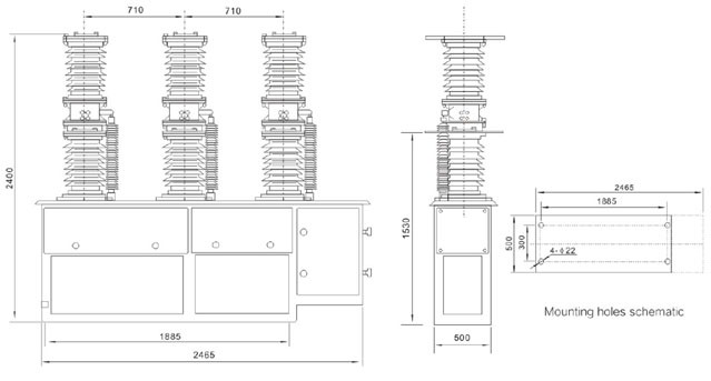 6. Được thiết kế đặc biệt cho môi trường ô nhiễm Loại IV, VCB điện áp cao ngoài trời ZW7 có thể được sử dụng ở các khu công nghiệp phức tạp và những nơi bị ô nhiễm ngoài trời nghiêm trọng.